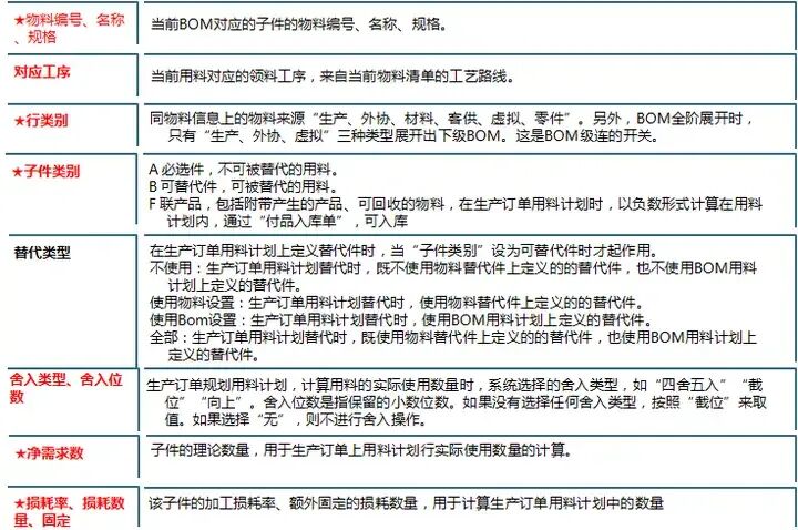 3、字段解释——用料计划