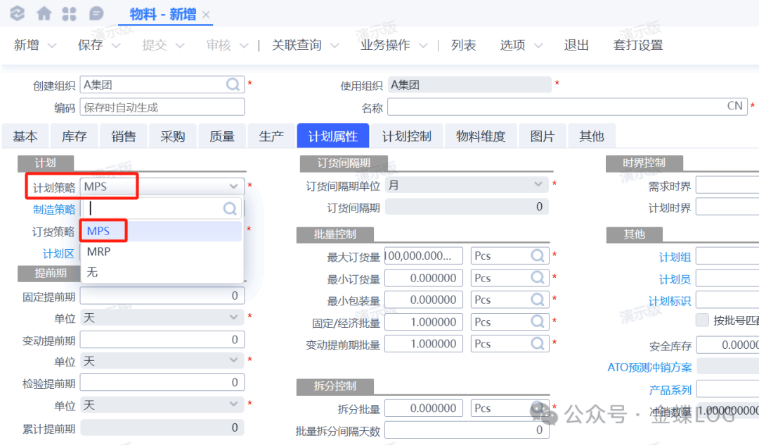 • MPS策略:物料参与MPS方案的运算,生成主生产计划建议,通常用于产成品或关键物料。