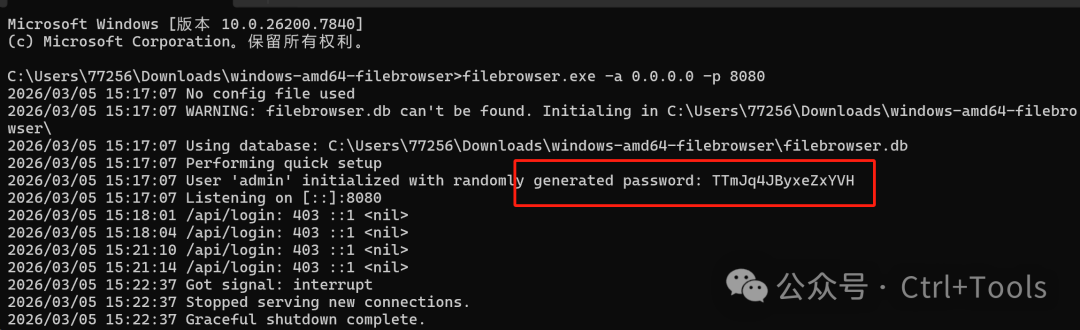 Windows 选择对应系统版本,下载后解压到任意文件夹即可。 2. 启动在解压目录里,打开命令行,输入下面内容: 第一次启动会得到一个随机密码,后续使用该密码登录