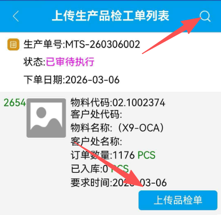 :ERP手机APP添加生产品检图片操作