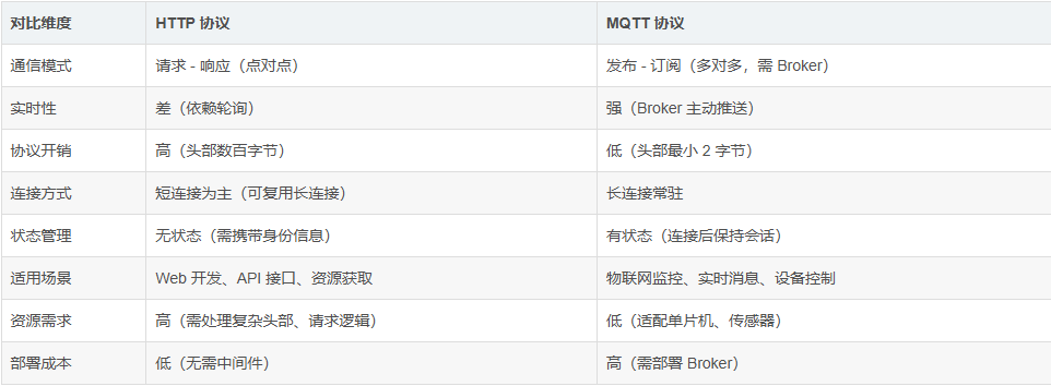 在物联网、移动互联网等领域,MQTT与HTTP是两种应用广泛的网络协议,二者在设计目标、通信模式、性能特性上差异显著,分别适用于不同场景。以下从核心定义、协议架构、关键特性、应用场景等维度展开详解,并对比二者核心差异。