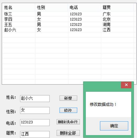 MessageBox.Show("修改数据成功!");