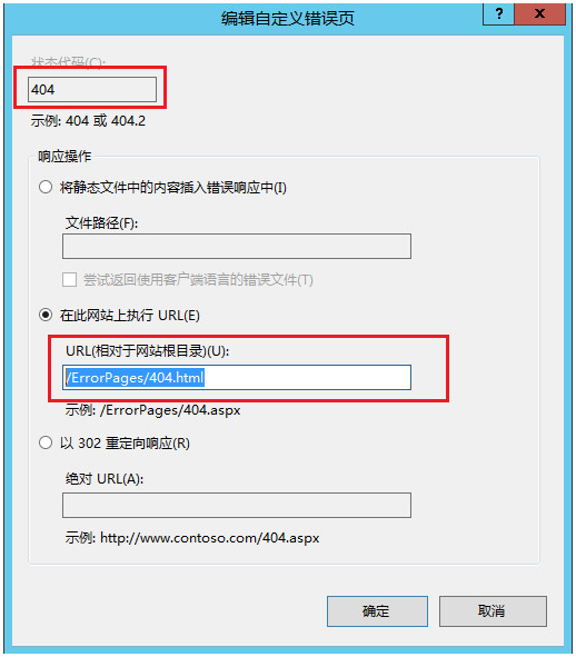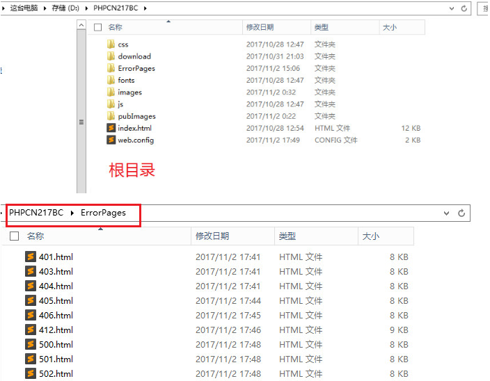 4、查看错误页面相对根目录的位置,按照示例填写就可以的。然后依次设置其它页面: