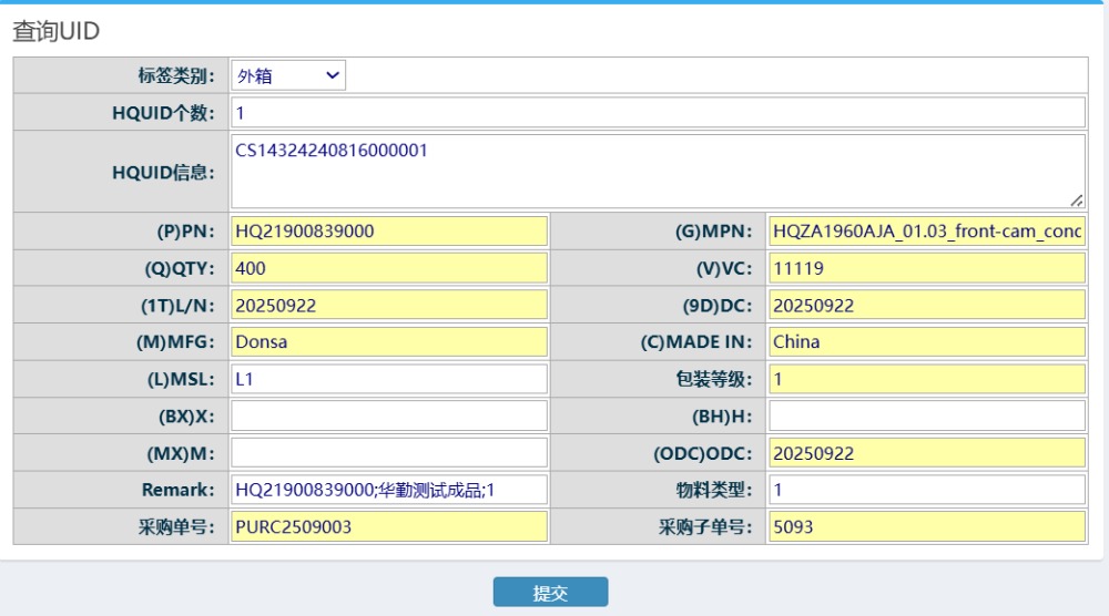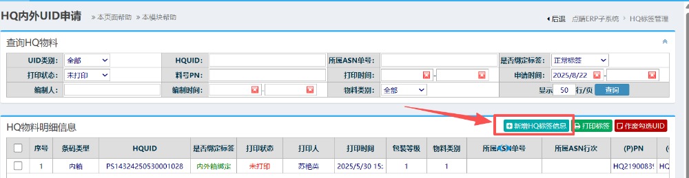 进入界面后,点击“新增HQ标签信息”按钮