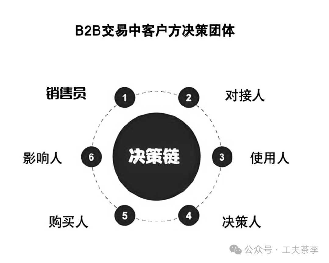 有了强关系、弱关系、人脉枢纽点的储备,我们就可以更容易找到攻坚大客户的机会点了,没有强关系就从弱关系入手,弱关系也没有,就从人脉枢纽点入手,这是一定可以很快找到的。 如果一时确实没有,那就反向思考: 除了你想认识这些人,还有谁也需要经常认识这些人?谁是这些人身边的常驻联系人?这类人就是人脉枢纽点。 找到他们之后,将其作为重点关系,逐步转化为你网络中的强关系。 ![]() 当我们锁定具体某个大客户时,这个时候的关键点就转化为理顺整个决策链。 快速准确地找出并影响不同时刻决策链上的关键人物,进而大力推动客户,是B2B销售攻坚过程中的一项核心能力。 在复杂的B2B采购决策中,每个人扮演的角色都不一样,在客户那么多人里面,到底哪些人才是真正能影响结果的人? ![]() 大致来说,客户内部参与决策的人,通常会分成以下几种类型: ① 决策人:真正能拍板的人,通常是预算控制人或项目负责人。但,职位高≠决策权大。有些高层只是“审批流程”中的一环,真正的技术选择,反而依赖于团队判断。 ② 影响人:他们通常是公司里的技术专家、资深工程师或者其他领域的专家。他们可能不签字,但他们的意见对决策者影响极大,有时候甚至直接决定了最终方案的走向。影响人很多时候是比决策人更关键的人,他们可能对你的产品或方案特别认可,愿意在内部帮你说话。也有可能是持消极态度的人,他们可能有自己偏好的供应商或技术方案,容易给你制造麻烦。 ③ 使用人:最终落地使用你产品或服务的部门。如果他们觉得不方便、不喜欢、不好用,整个项目推进都困难重重。 ④ 购买人:比如公司的采购人员、法务人员、财务人员,他们负责审核合同、条款以及价格。他们可能无法决定具体技术路线或方案,但他们有可能拥有否决权。 谁是当下更关键的人? 决策链条越复杂,销售攻坚就越需要迅速找准敢拍板、愿意拍板的人。现实是,客户内部的决策人通常隐藏得比较深。那么,我们到底怎样才能迅速地找到这个“隐藏人物”呢? 建议从以下3个角度分析: ① 谁出现在关键会议?随着项目的进展,越是靠近关键的决策节点,越是需要真正的决策人出面拿主意。产品选型会、供应商沟通会、关键技术路线讨论会,这些重要会议上出席的人,一般是对项目具有更高决策影响力的人。② 谁对失败风险最敏感?越是在意风险的人,越可能是决策人。真正的决策者,不仅仅是职级高或者是影响力大,更重要的是,他们通常需要对项目的最终结果负责。你和客户讨论项目细节时,特别关注风险的人,往往是最终的决策人。你可以留意谁在频繁追问:“出了问题怎么办?”、“上线延迟有没有预案?”、“风险控制你们怎么做?”,这个人,往往是对项目“负责”的人。③ 关系人验证:最直接,但是需要事先做好工作。在客户内部有熟人或合作多年的人脉,不妨直接问一句:“这个项目,是不是江总负责啊?”对方如果愿意告诉你,答案无疑是准确的,要不然对方也会直接告诉你,他目前也不清楚。这样的信息,胜过你反复推测。当我们理顺了整个决策链之后,接下来的任务就是如何有效地影响他们,让他们愿意选择我们的方案。 很多销售人员常犯的错误是,用同样的方式与所有人沟通,却忽视了每个人角色、关心点和诉求的不同。要想赢得更多人支持,我们必须要用更精准、更有效的方法,针对他们的真实关注点去沟通。 分享针对两个最重要要群体的不同思路: ① 影响高层(决策层):聊他们真正关心的东西,高层不关心功能,而关心项目是否可控、是否能成功、是否会影响自己声誉,所以要聊的更多是: