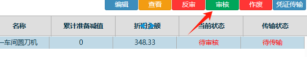 点一条折旧单后,再点击审核按钮 如下图: