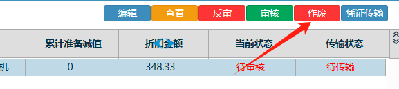 点一条折旧单后,再点击作废按钮 如下图: