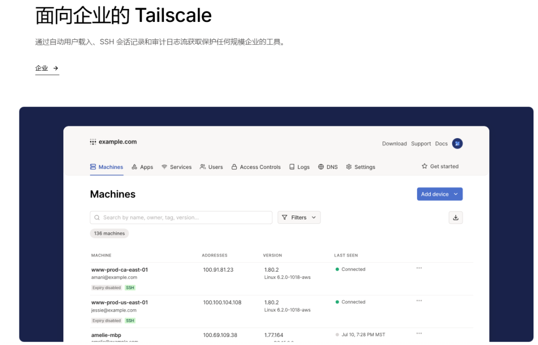 先别被它的名字吓到,Tailscale不是啥尾巴 scale,也不是宠物美容品牌。 它是一个基于WireGuard的异地组网工具,主打的就是一个“简单“。 官网地址我放这儿了,自己去看: 简单来说,Tailscale能让你把不同地方的设备,组成一个虚拟局域网。 不管是Windows、macOS、Linux,还是iOS、Android、NAS,它全支持。 而且,不用公网IP,不用配置路由器,不用开端口,3分钟搞定。 【二、亲测:3个场景,彻底被圈粉】