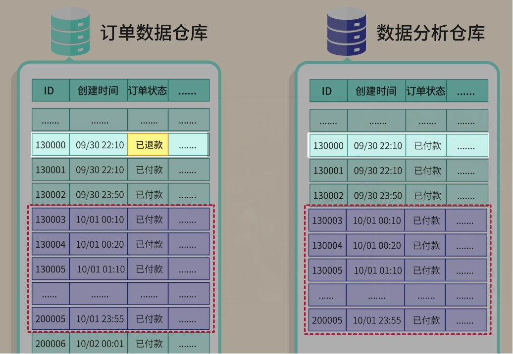 如果使用订单创建时间作为增量同步的分界标志,只能同步新增的订单,但是订单状态的更新不会同步!