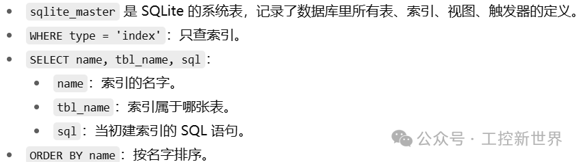 001 了解一下 SQLite 数据库 SQLite 是一个轻量级的嵌入式关系型数据库,它非常适合嵌入式应用和小型项目。 零配置:与传统的数据库系统(如 MySQL、PostgreSQL)不同,SQLite 不需要安装和配置任何数据库服务器,而是将整个数据库存储在一个单一的文件中,直接通过文件来存储和读取数据。 .db 或 .sqlite 文件中。SQLite 是一个以文件为基础的数据库引擎。每个数据库都是一个普通的磁盘文件,所有的数据和结构都存储在这个文件中。![]() .db:这只是 SQLite 数据库文件的常见扩展名。很多时候,这个扩展名是为了让文件看起来像一个通用的数据库文件,或者是根据开发人员的习惯命名。 .sqlite:这是 SQLite 数据库的另一种常见扩展名,通常用于强调该文件是一个 SQLite 数据库。也可以用 自包含:SQLite 是一个纯 C 实现的数据库引擎,所有的功能都可以在一个独立的文件中运行,因此非常适合嵌入式系统。 B-tree 存储:SQLite 使用 B-tree 结构来存储数据,使得数据库查询高效。B-tree 是一种自平衡的数据结构,适用于高效查找、插入和删除。 支持 SQL 语法:SQLite 支持标准的 SQL 语法,包括查询、插入、删除、更新等常用操作。 SQL 支持:SQLite 完全支持 SQL 标准,包含了大部分常用的 SQL 功能(如 JOIN、子查询、事务等)。